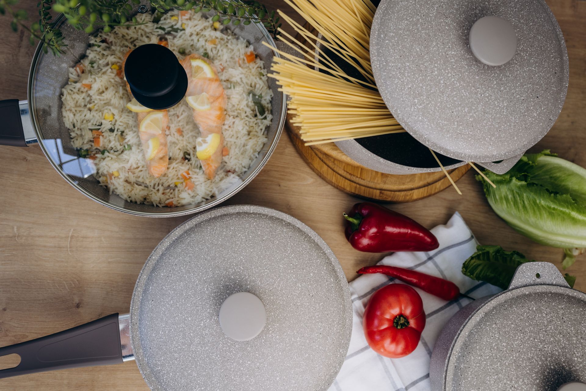 Лінійка посуду з протипригарним покриттям і полегшеним корпусом.